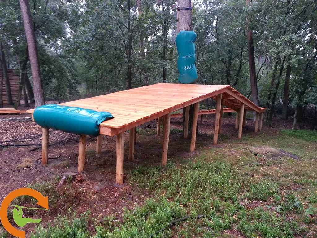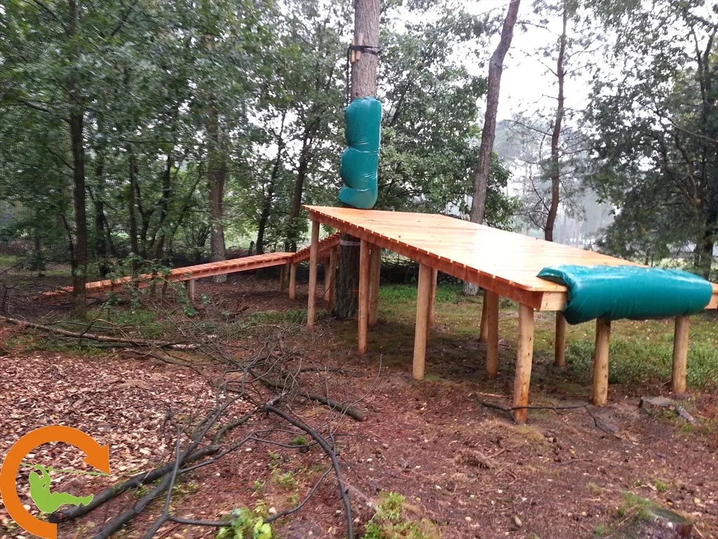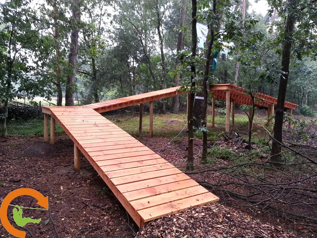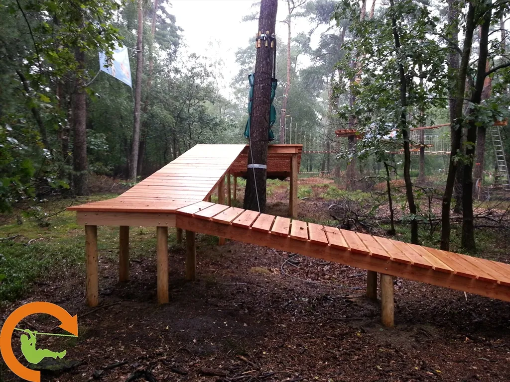 Endbearbeitung der neuen Flying Fox Rampe für den Hochseilgarten für Menschen mit Behinderungen.
