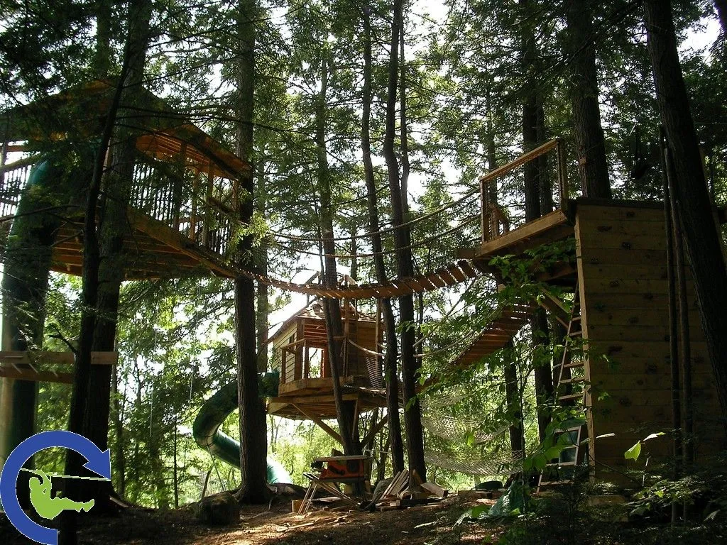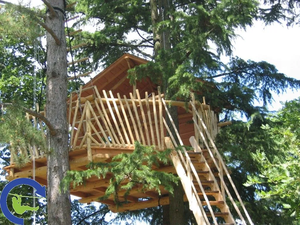 Baumhäuser als Teil von Hochseilgärten und Abenteuerparks