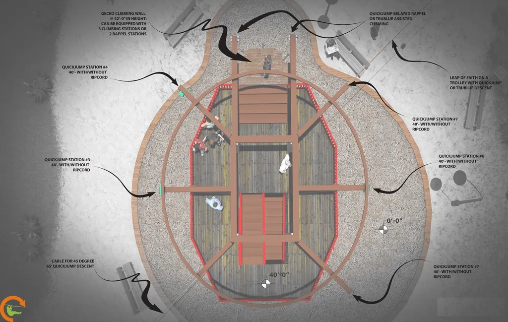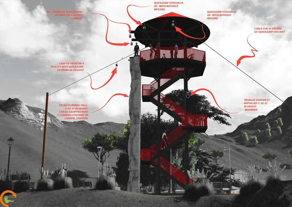 Der Turm eignet sich insbesondere für Betreiber kommerzieller Freiluftanlagen im Sektor Sport, Freizeit & Erholung, und maximiert dank seiner modularen Aufbauweise das Spaßerlebnis für Besucher und die für Betreiber erzielbare Besucherdurchgangsrate. Das Design des Turms zeichnet sich durch seine extreme Anpassbarkeit aus und erlaubt eine breite Auswahl an von Ihnen spezifizierten Aktivitäten.