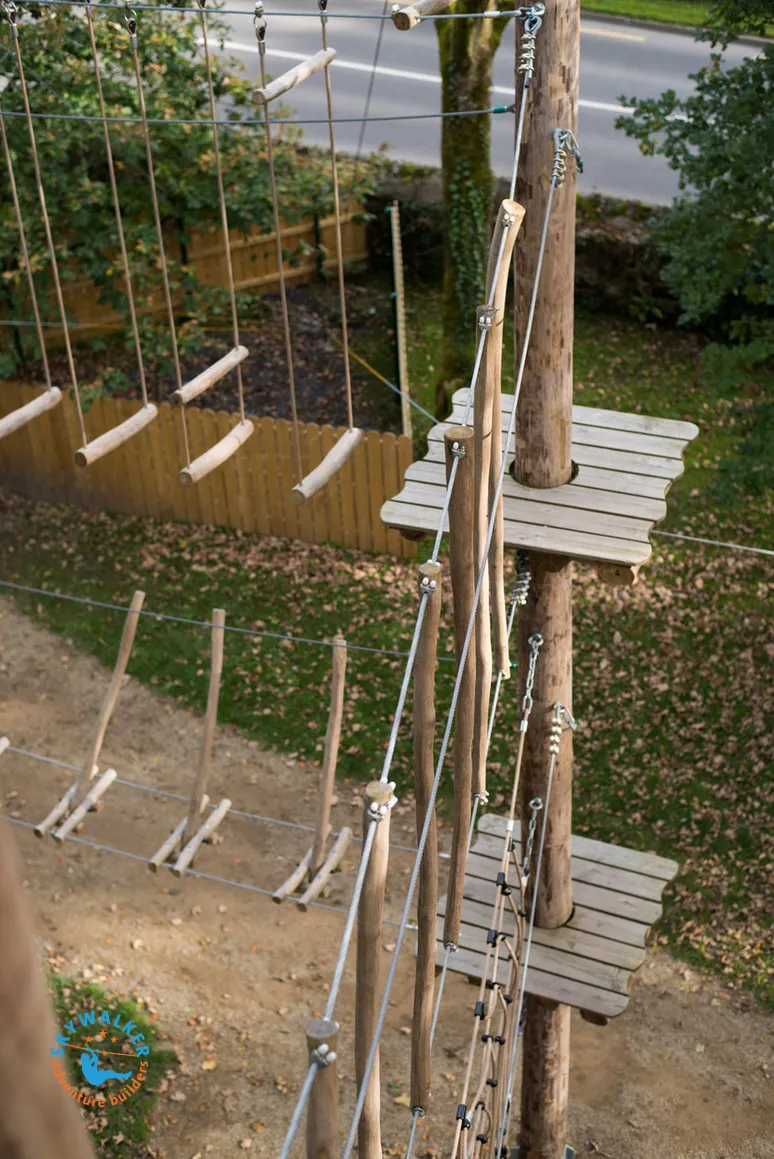 We hebben onlangs een nieuw touwenparcours voltooid in het pittoreske Castlecomer, Ierland. Dit succesvolle project biedt een opwindende mix van avontuur midden in de natuur. Ontworpen met waardering voor de prachtige omgeving van Castlecomer, maximaliseert de lay-out van de baan de adembenemende uitzichten en dompelt klimmers onder in een wereld van eeuwenoude bomen en schilderachtige landschappen.